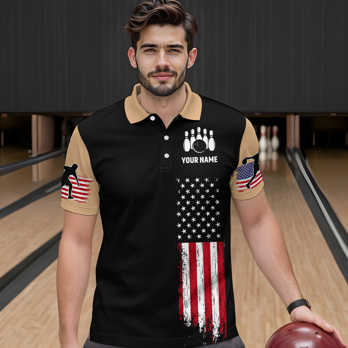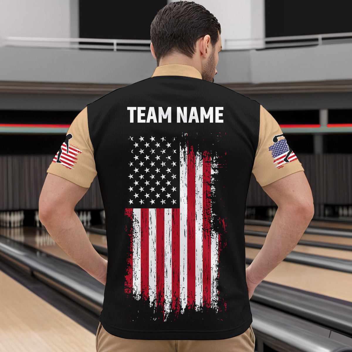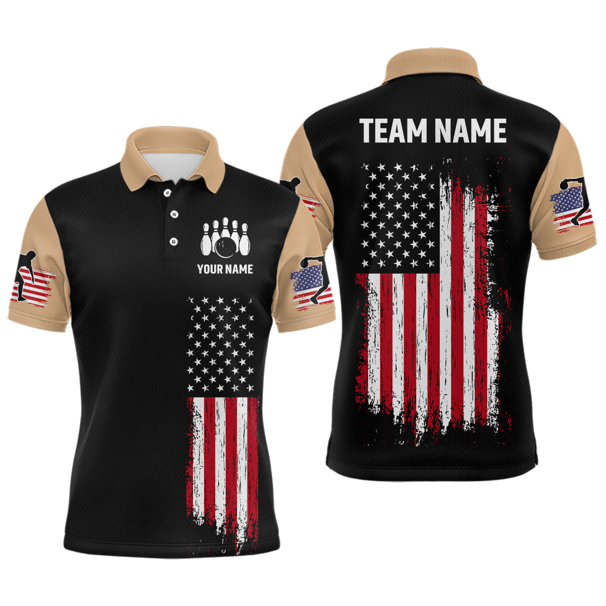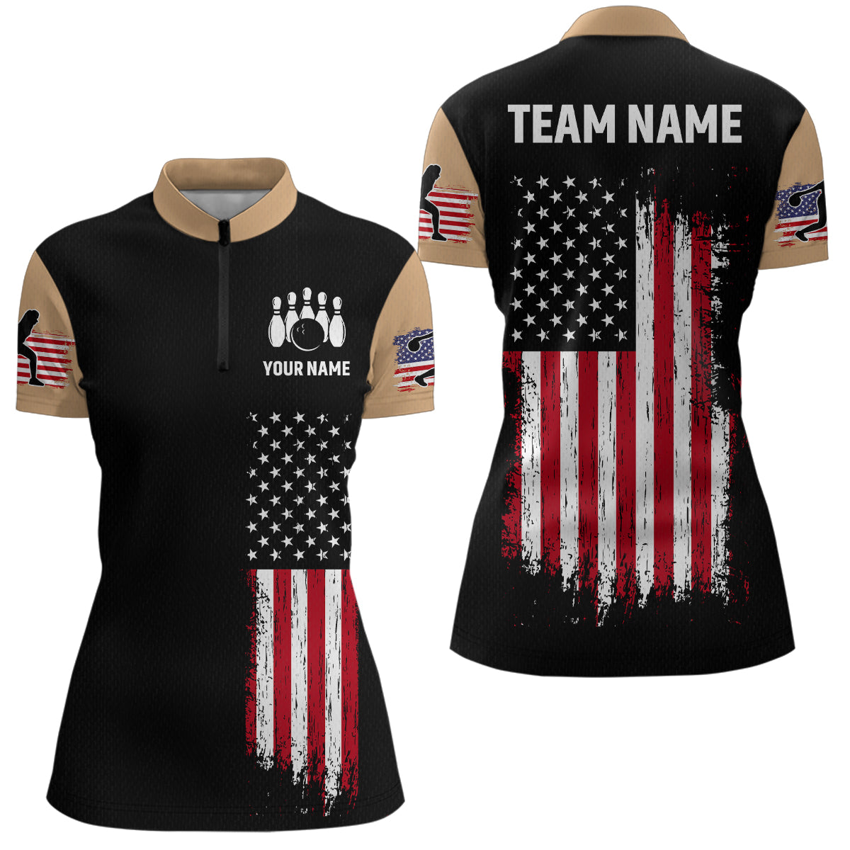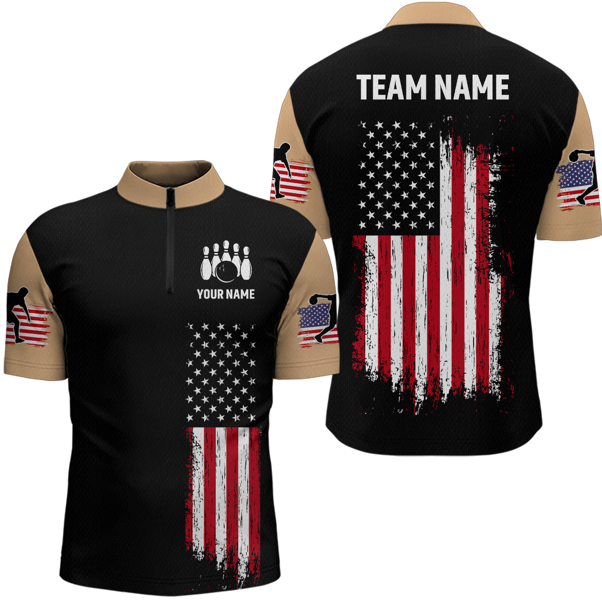 American Flag Brown Bowling Shirts for Men Women Team Bowling Jersey Polo & 1/4 Zip MBL17