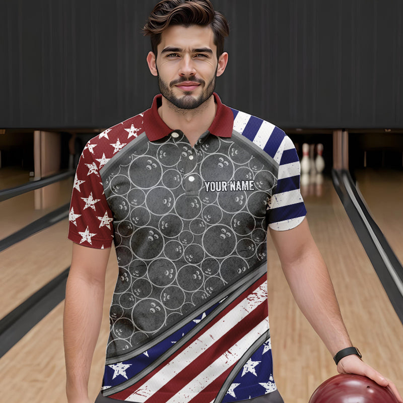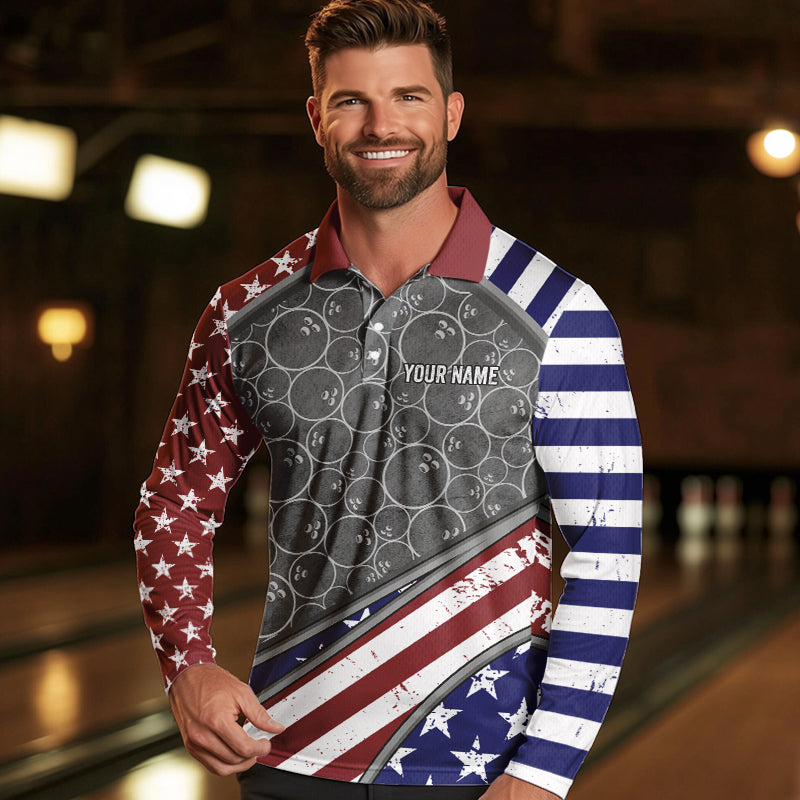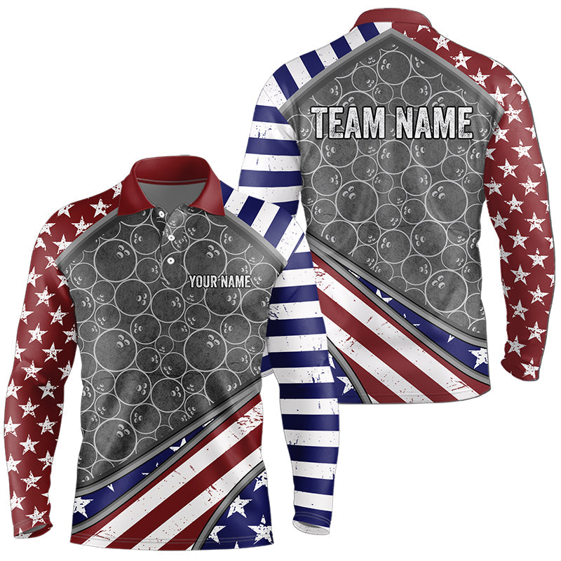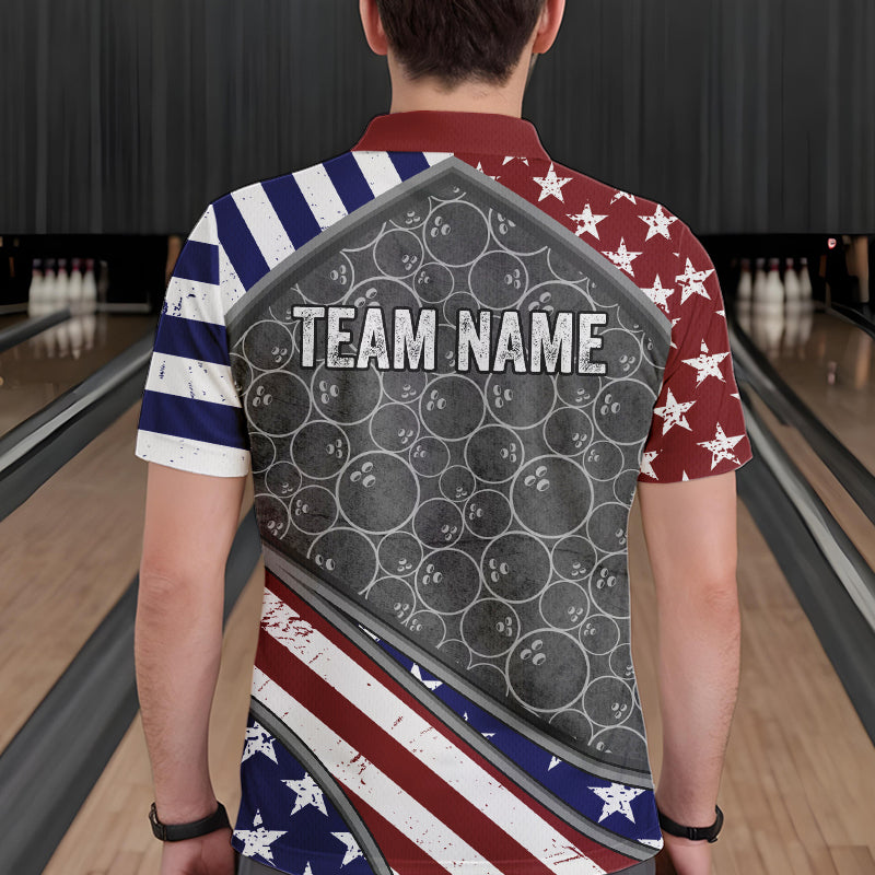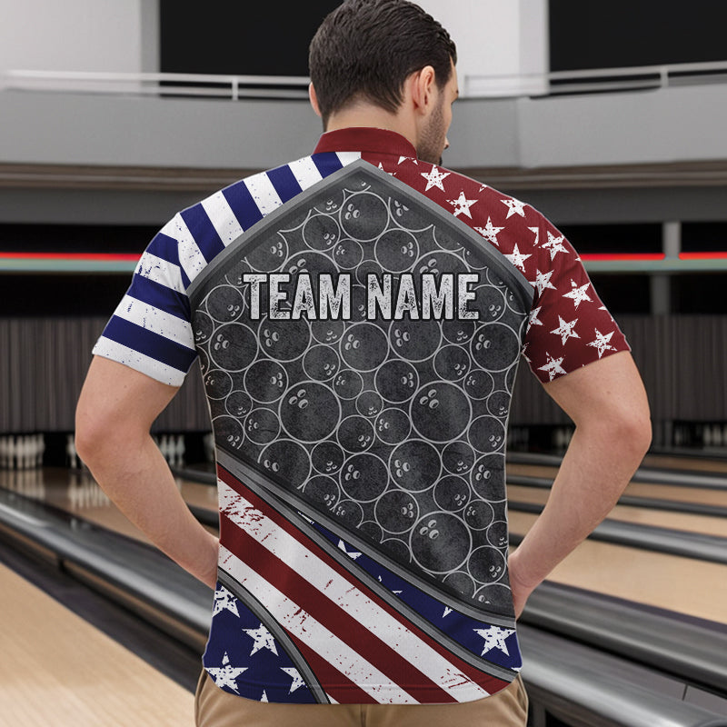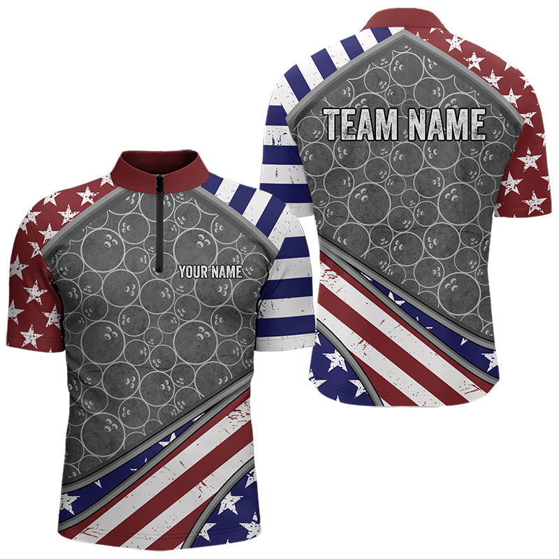 American Flag Gray Camo Bowling Polo, Quarter Zip shirts for men Custom patriotic Team bowling jerseys NQS9404
