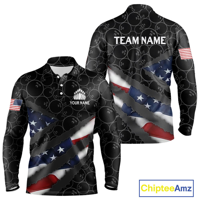 American Flag Mens Bowling Shirt Custom Bowling Jersey for Team Patriotic Bowlers Polo, 1/4 zip Shirt NQS10427