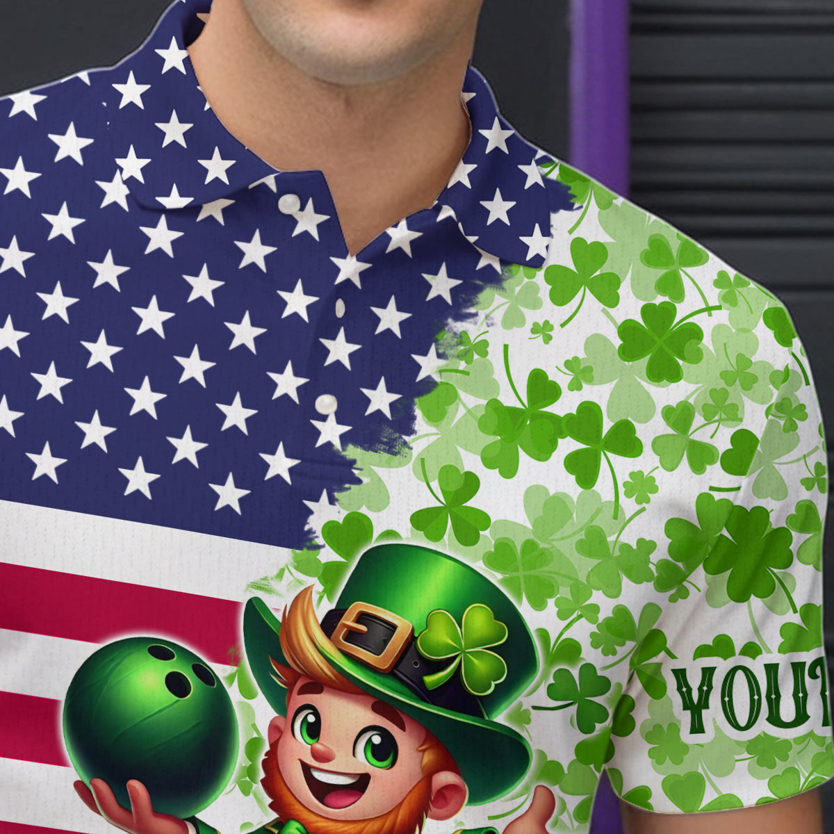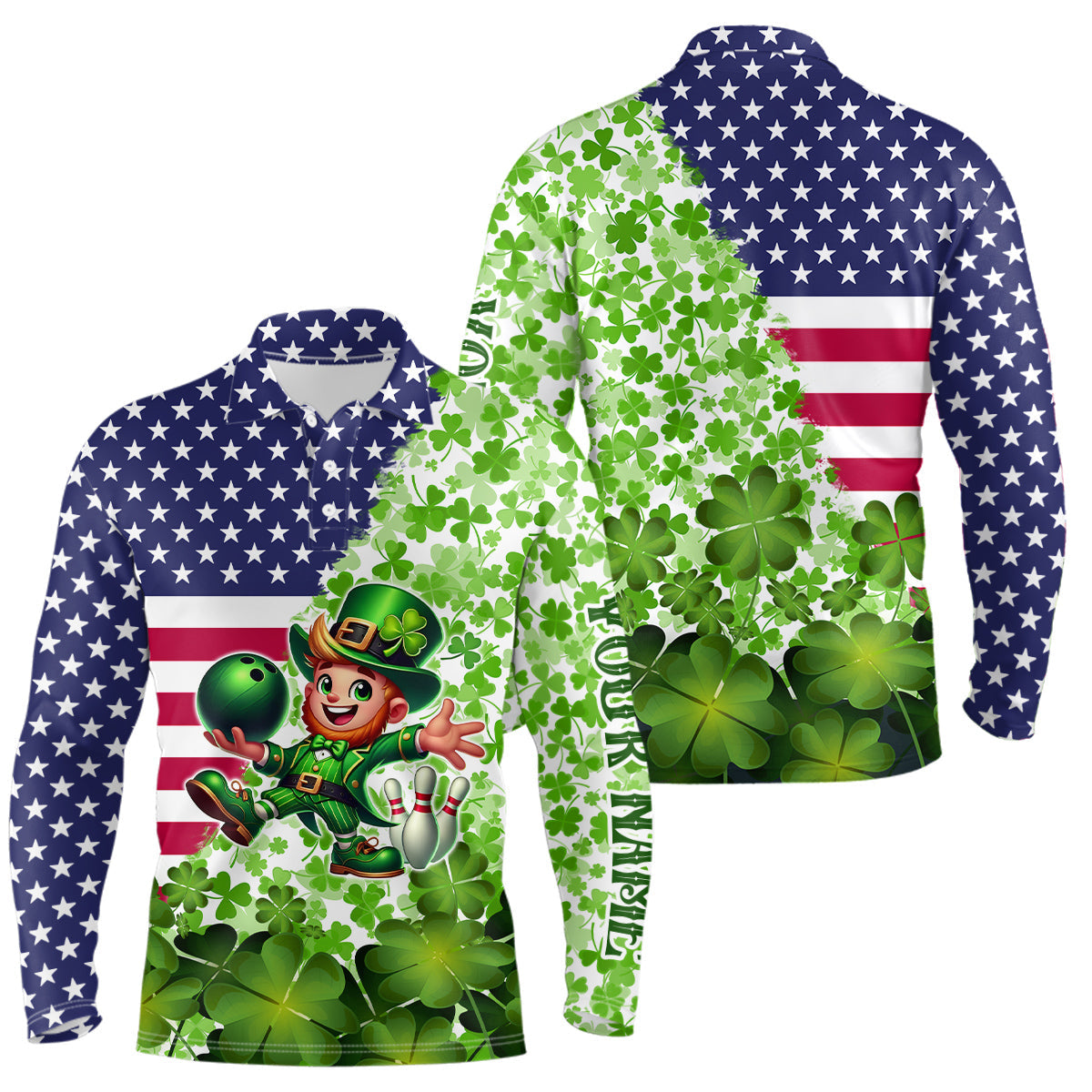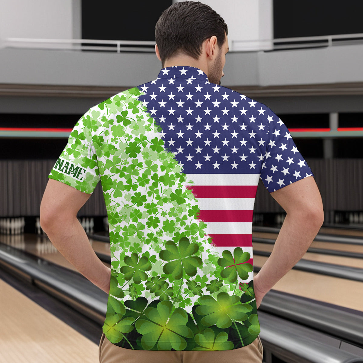 American flag St Patrick day shamrock pattern custom Team Bowling Polo, Quarter Zip shirt for Men NQS9581