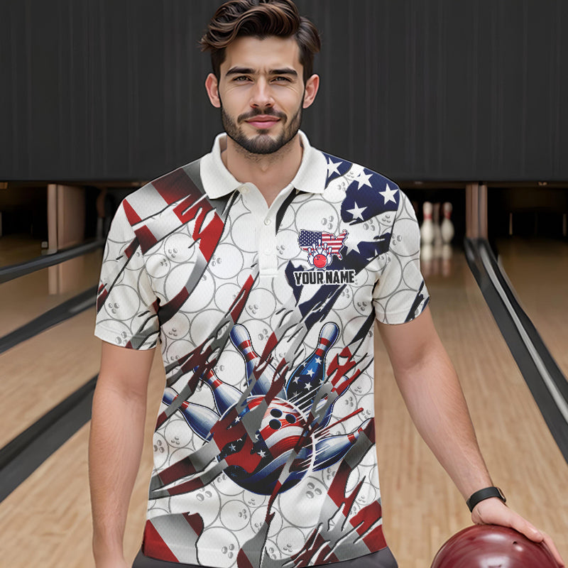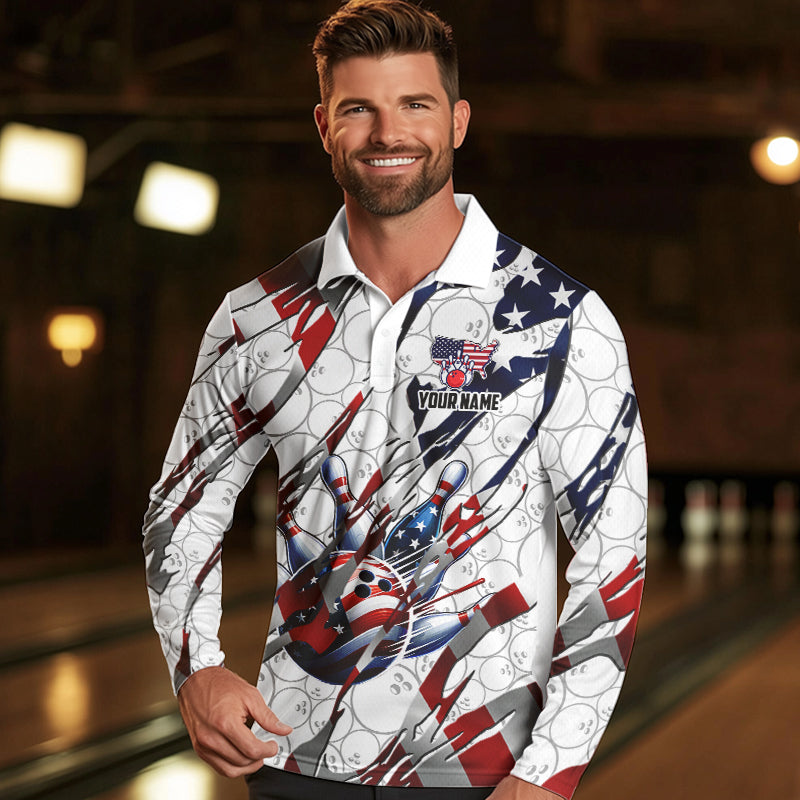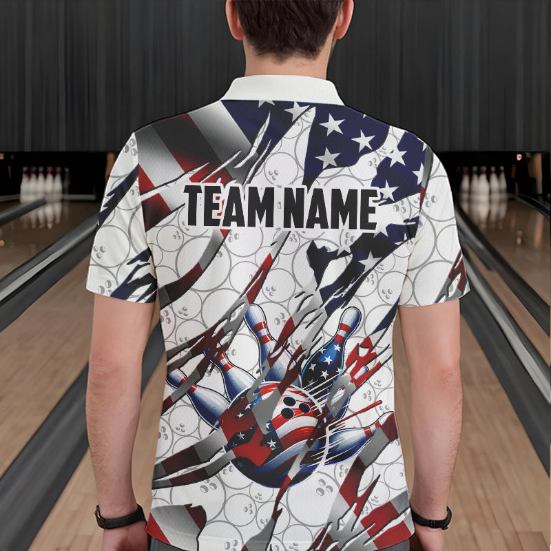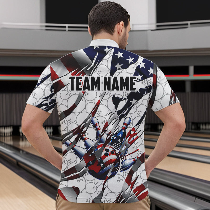 American flag white bowling camo Mens bowling shirts Custom patriotic Bowling Team League Jerseys NQS9378