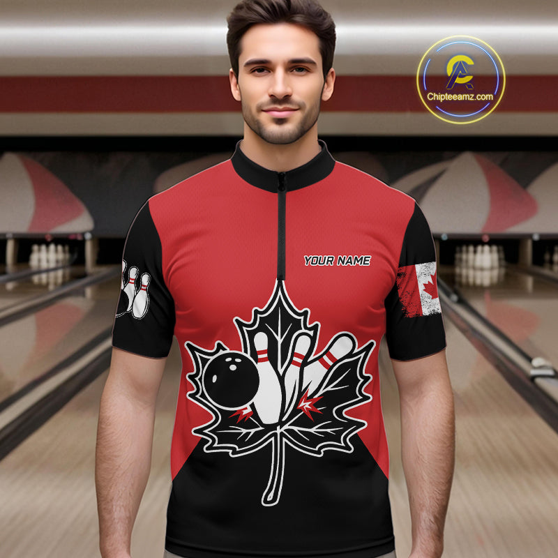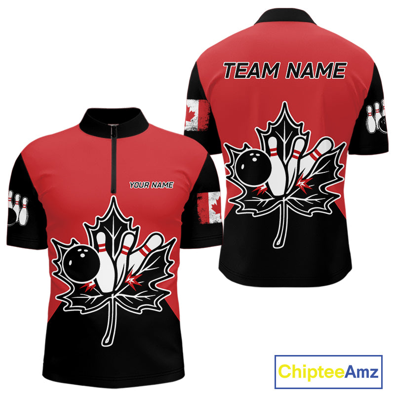 Black and Red maple leaf Mens bowling shirts Custom Canadian Flag bowling team  jerseys, bowlers gifts NQS9992