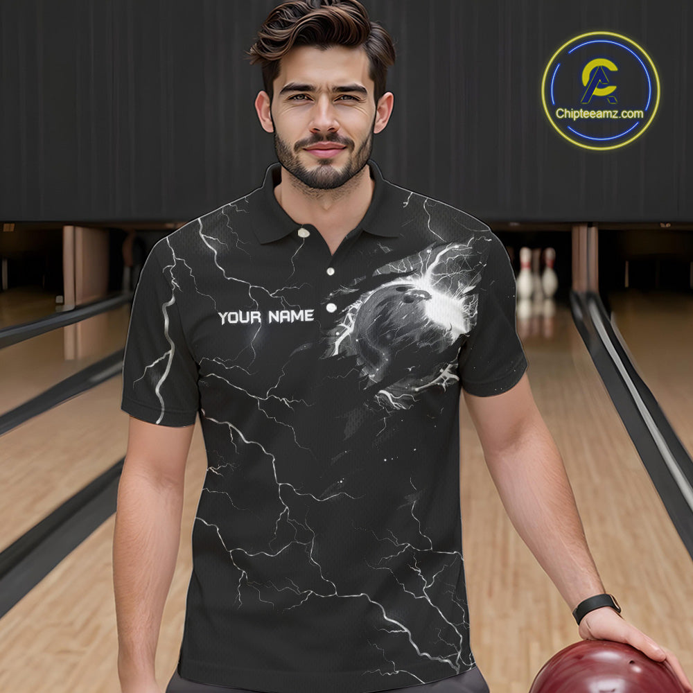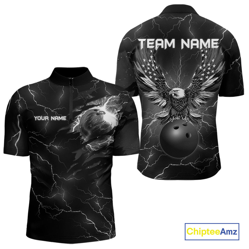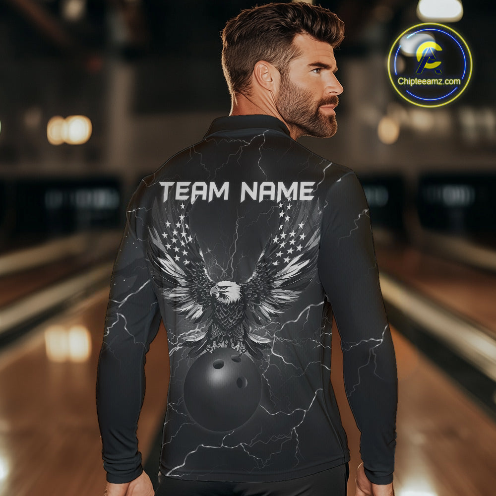 Black lightning thunder bowling American flag Eagle custom Mens Bowling Polo, Quarter Zip Shirts NQS10112