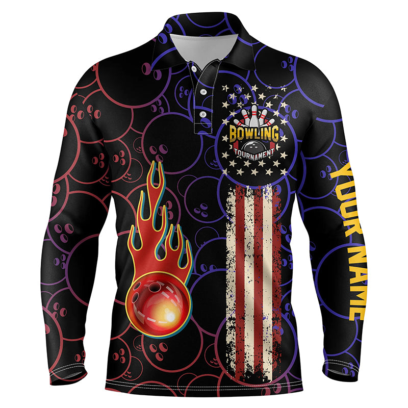 Custom American flag black Bowling polo Shirts For Men, patriotic Bowling tournament Jerseys NQS5615