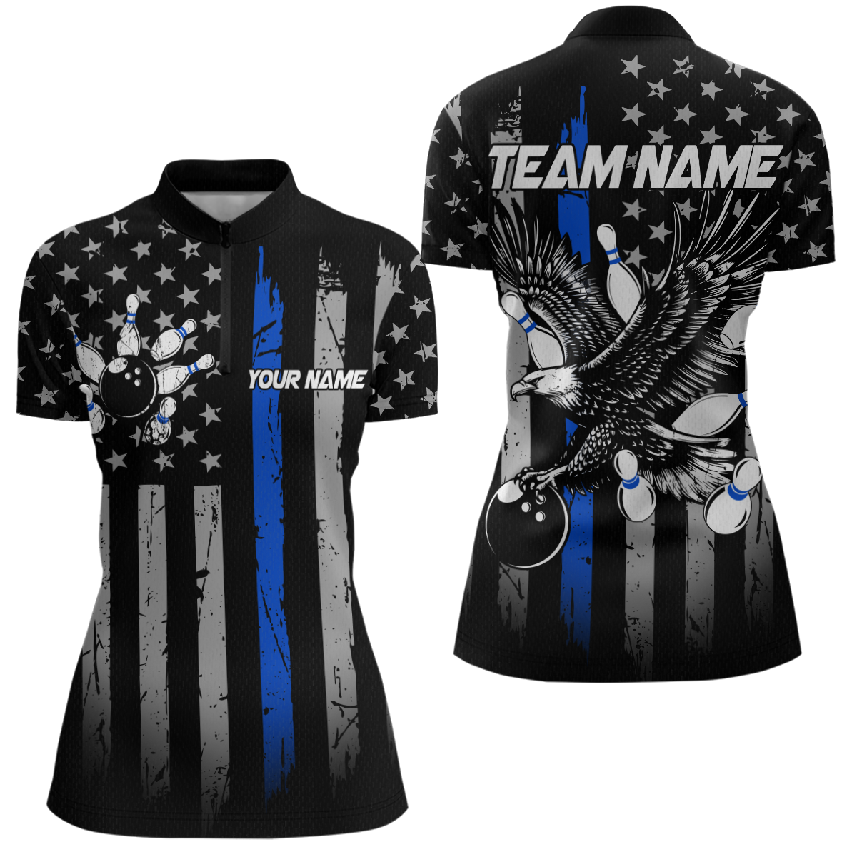 Custom Blue US Flag Eagle Bowling Jersey for Women Bowling Uniform Polo & 1/4 Zip Bowling Team Shirts HNT119