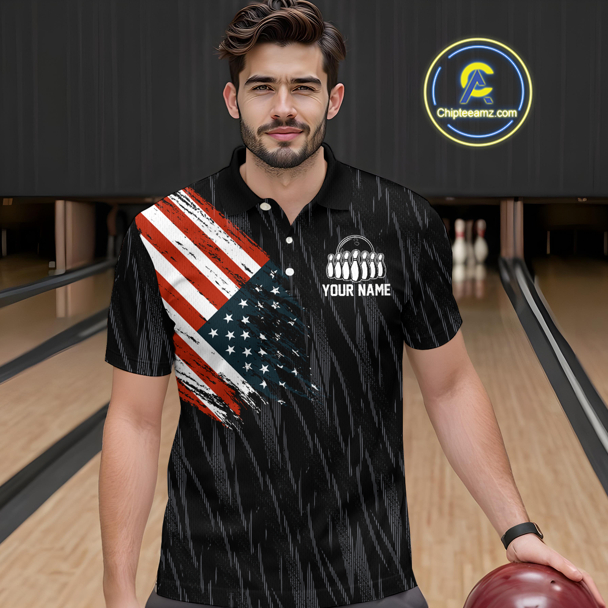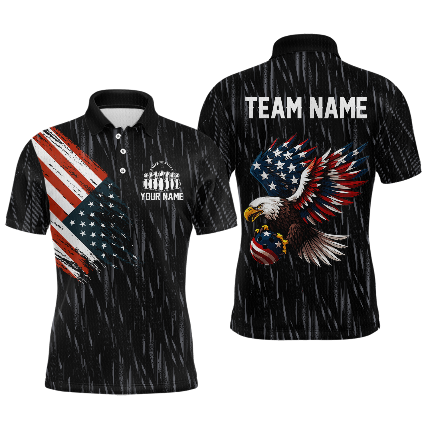 Custom American Flag Eagle Bowling Men Polo & 1/4 Zip Shirts Bowling Team Jerseys HNT89