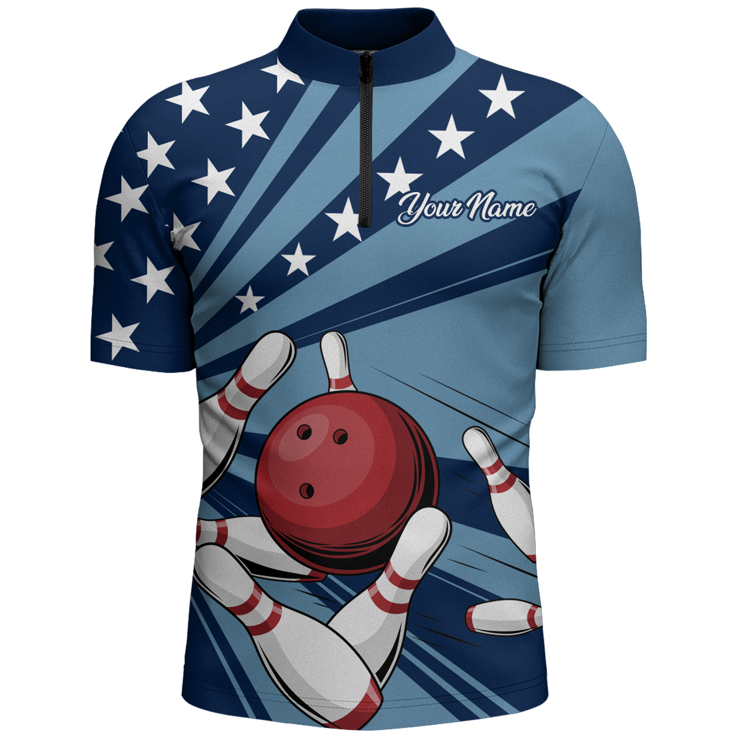 Custom Navy Bowling Jersey For Men American Flag Bowling Team Shirt Bowling Quarter-Zip Shirt BDT309