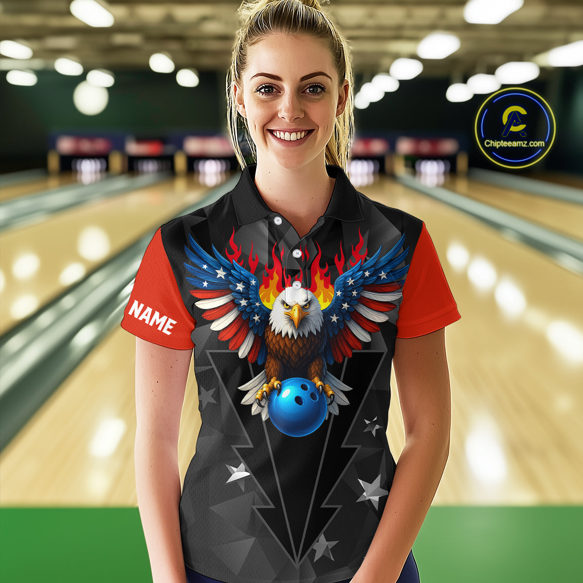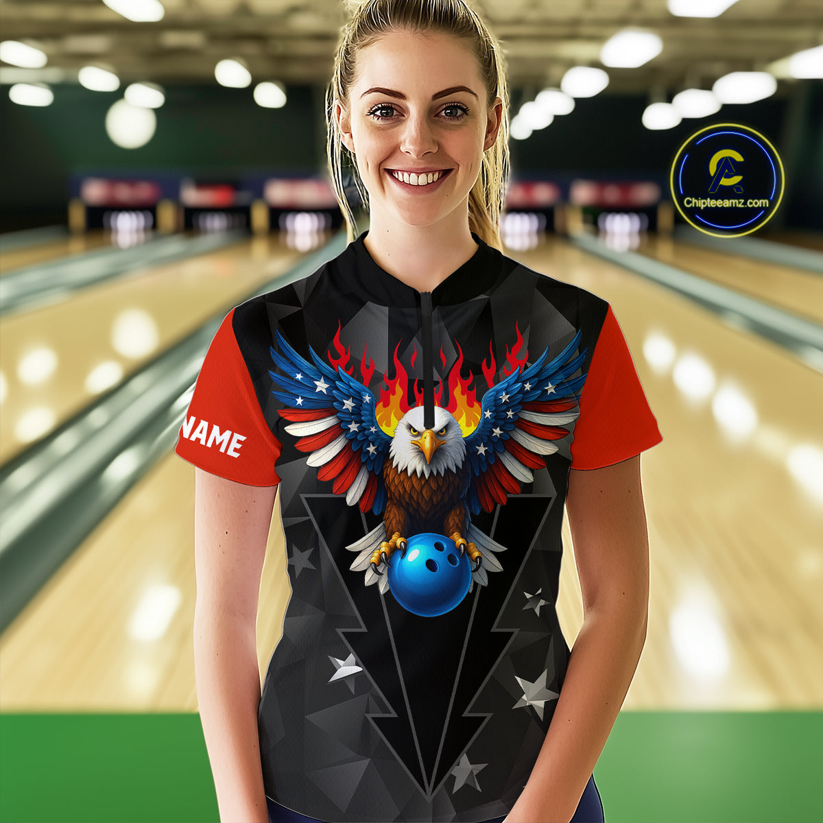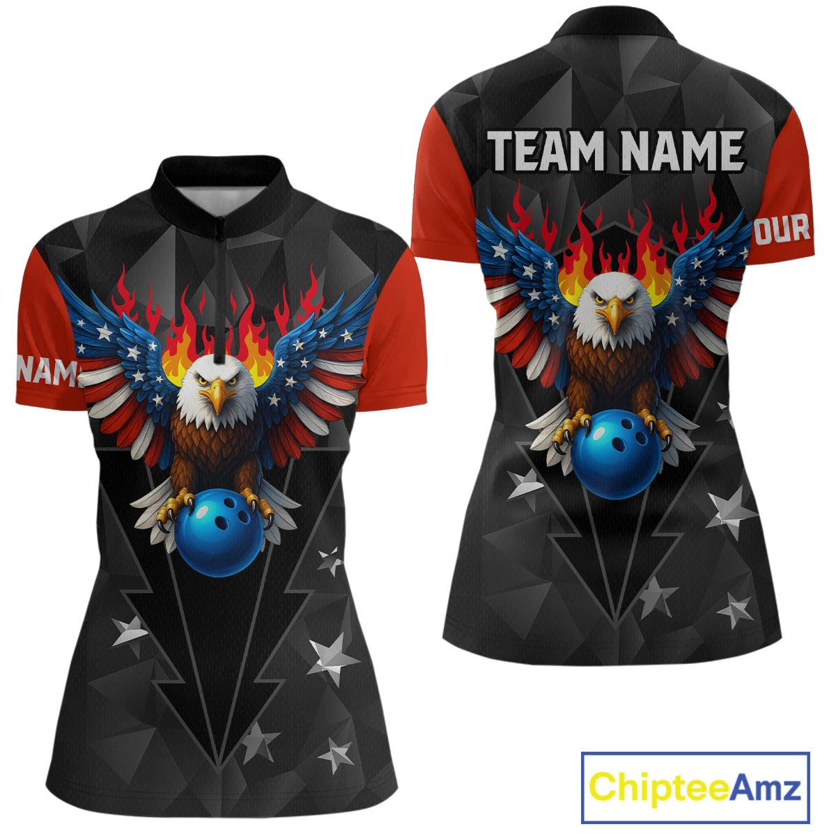 Eagle US Flag Bowling Custom Women Bowling Shirt Polo & Quarter-Zip Bowling Team Jerseys HNT67