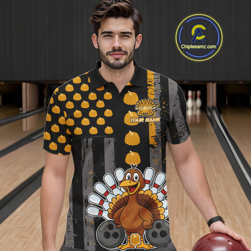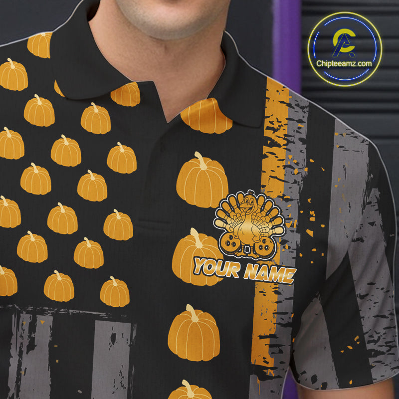 Funny Bowling Shirts For Men Pumpkin American Flag Turkey Thanksgiving Custom Team turkey bowl shirts NQS10943
