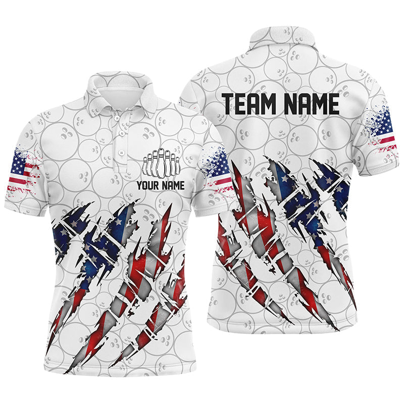 Custom American Flag Patriotic Bowling Shirts For Men, Personalized Bowling Team Shirts IPHW7044