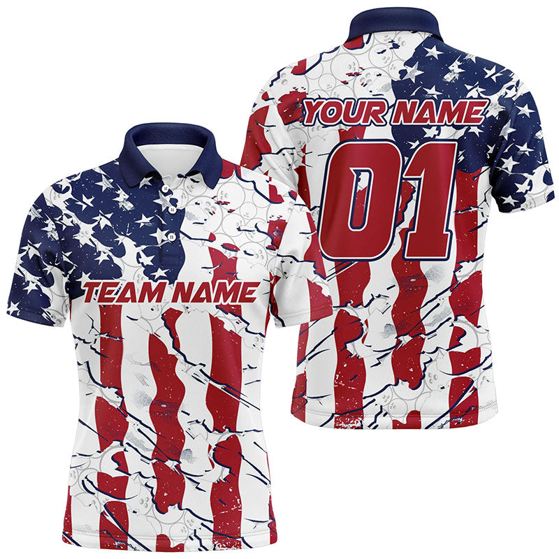 Personalized American Flag Patriotic Bowling Shirt For Men With Custom Name, Team Name, Number IPHW7101
