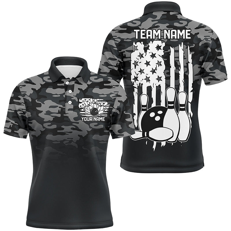 Gray Camo Custom Patriotic Bowling Team Shirts For Men, American Flag Bowling League Shirt IPHW7435