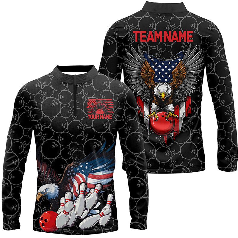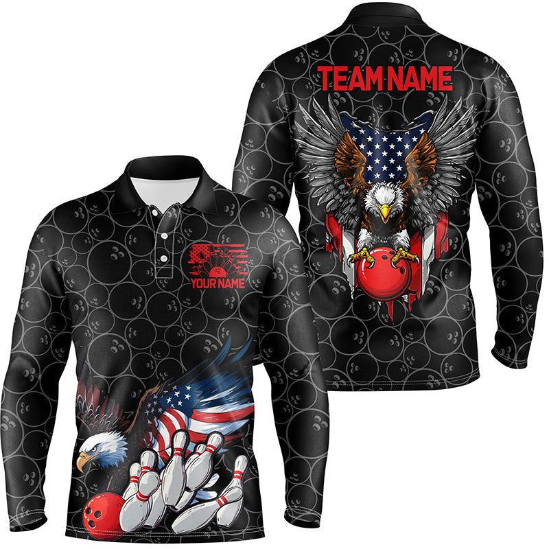 American Flag Eagle Custom Patriotic Us Flag Bowling Shirts For Men, Black Bowling Team Uniform IPHW7891