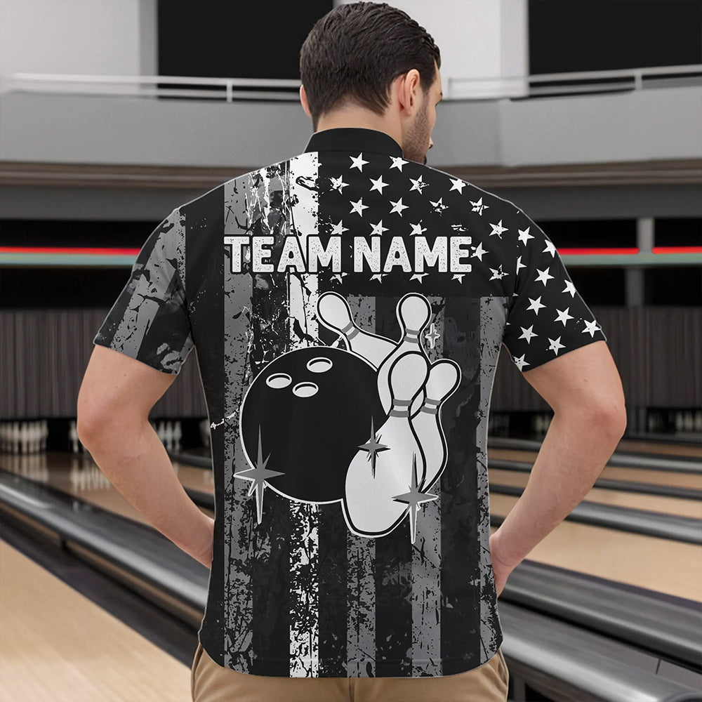 Grey And Black Grunge American Flag Patriotic Bowling Shirts For Men Custom Bowling Team Jerseys TDM3505