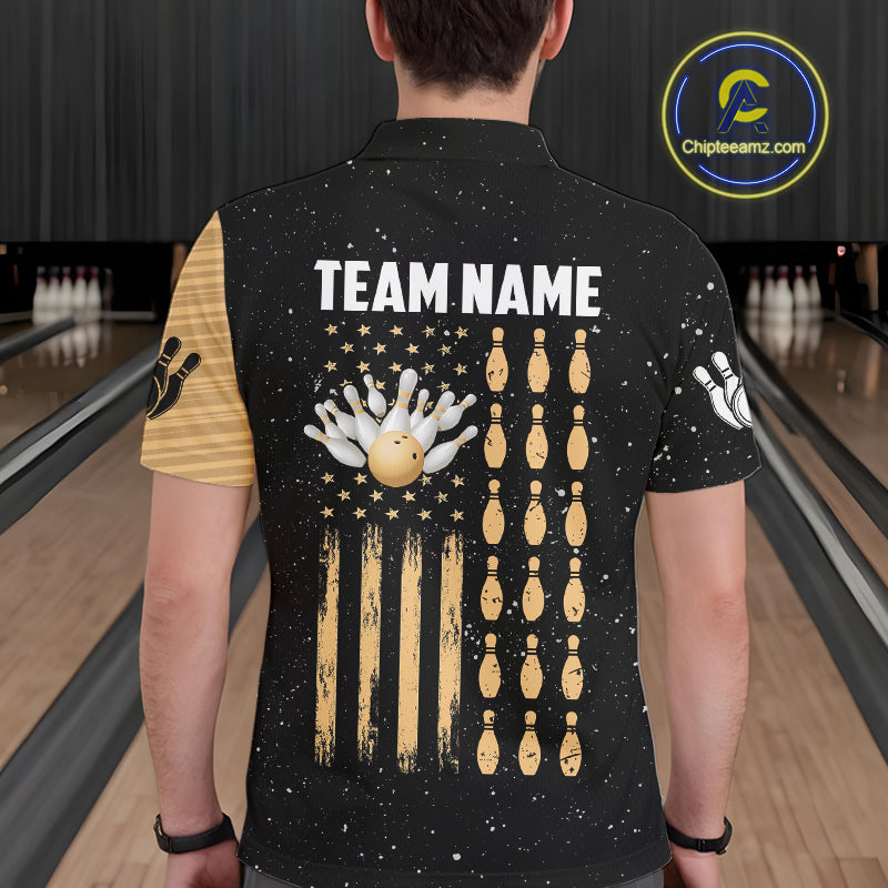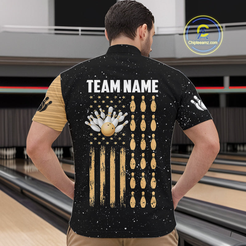 Custom Grunge American Flag Bowling Shirt For Men, Patriotic Bowling Team Jersey Polo & 1/4 Zip TDM4631