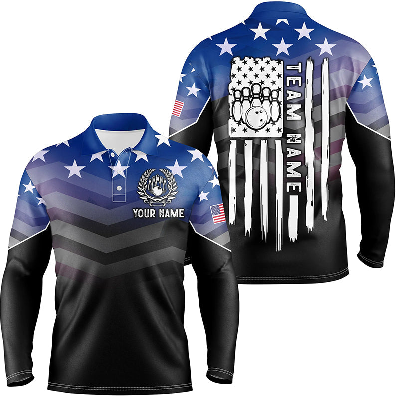 Mens bowling Polo, Quarter zip shirts Custom American flag patriotic bowling team league jerseys NQS8096