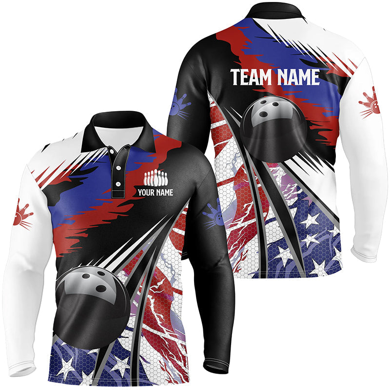 Mens Polo, Quarter Zip bowling shirts Custom black ball American Flag Bowling Team League Jerseys NQS7740