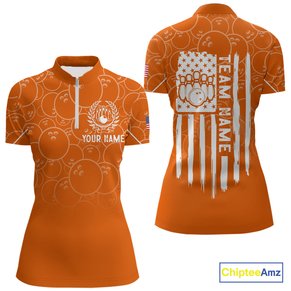 Orange bowling camo Womens bowling shirts Custom American flag patriotic bowling team league jerseys NQS10715