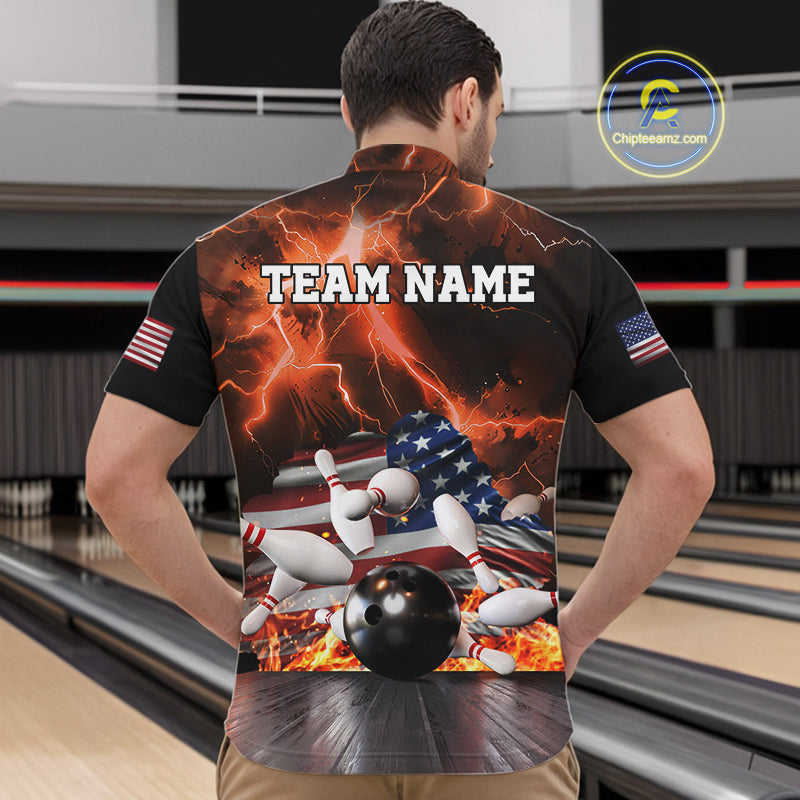 Orange Lightning thunder storm American Flag Bowling Shirt For Men Custom Bowling Team League Jerseys NQS10291