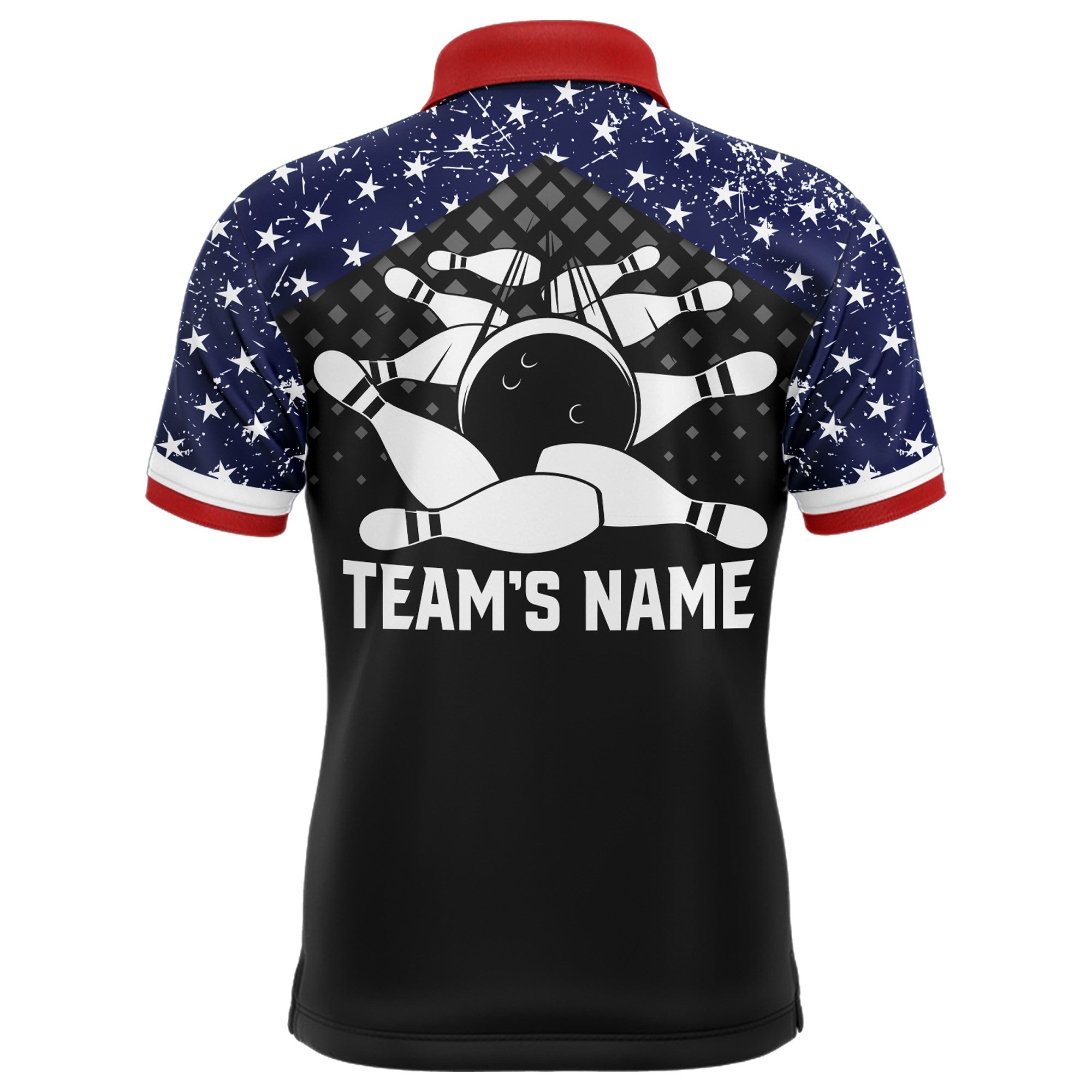 Patriotic Bowling Polo Shirt For Men Custom Bowling Team League Jersey USA Flag Bowling Shirt BDT140