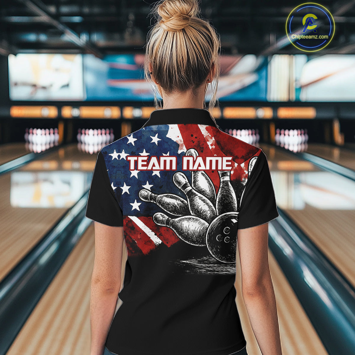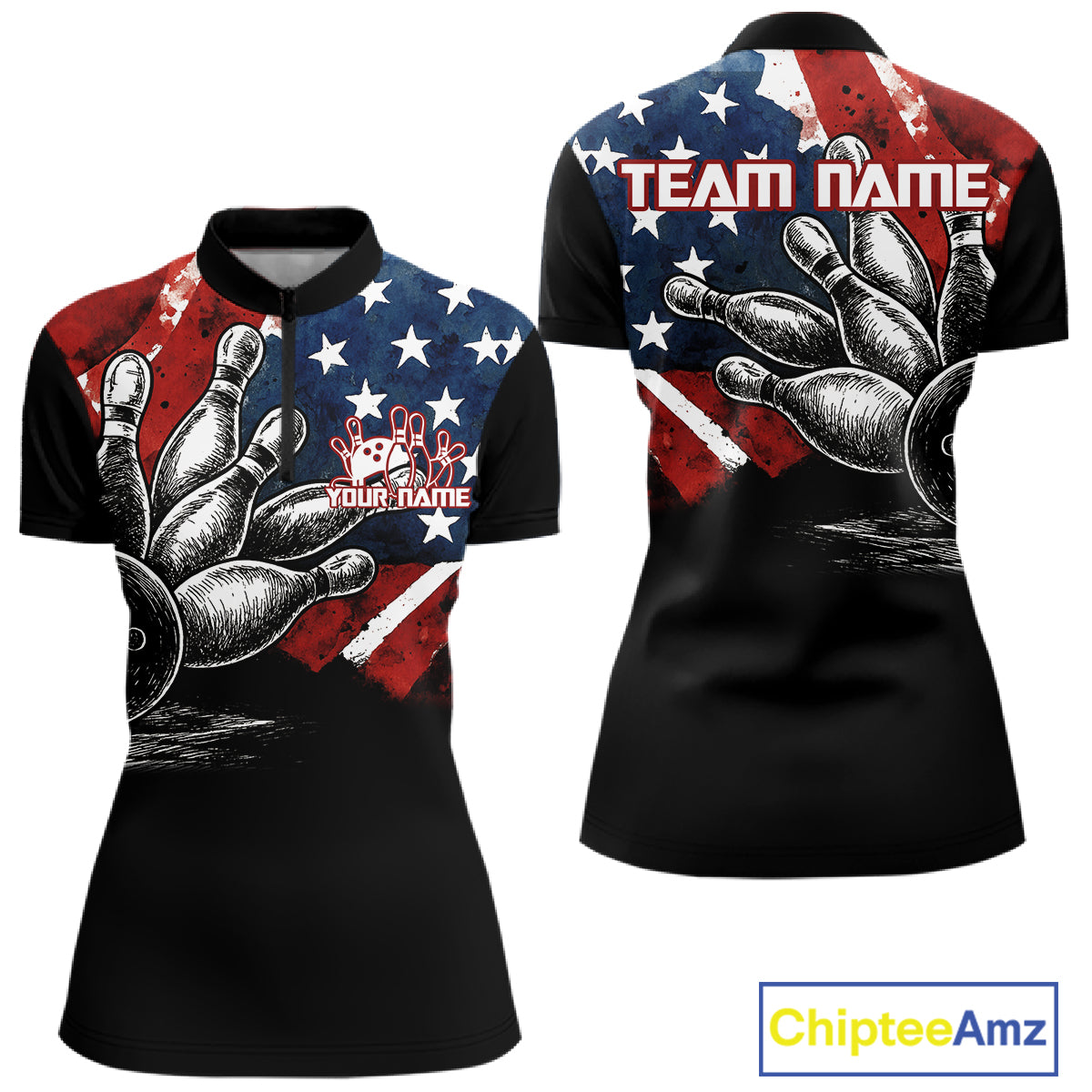 Personalized American Flag Bowling Team Shirts For Women, Patriotic Bowling Gifts NQS10829