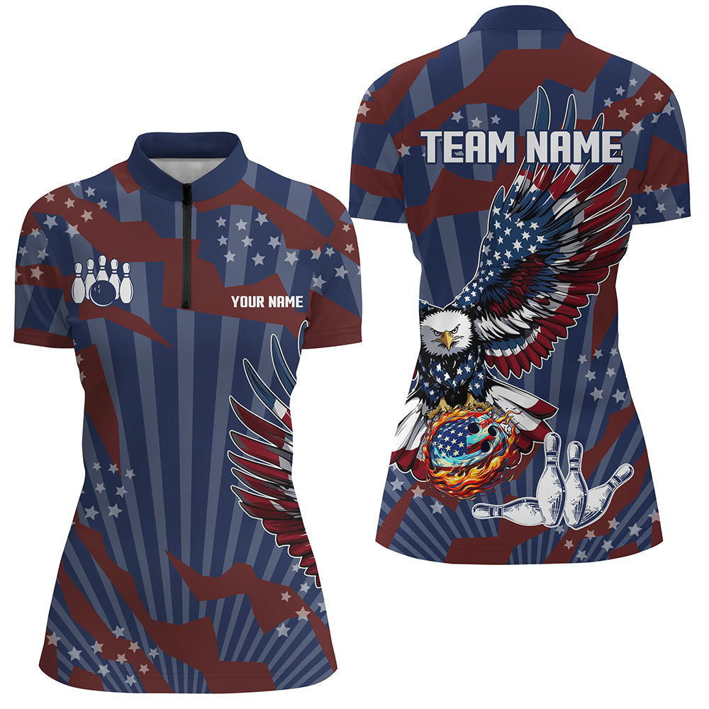 Personalized American Flag Eagle Bowling Shirts For Women Custom Patriotic Bowling Team Jerseys NQS9101