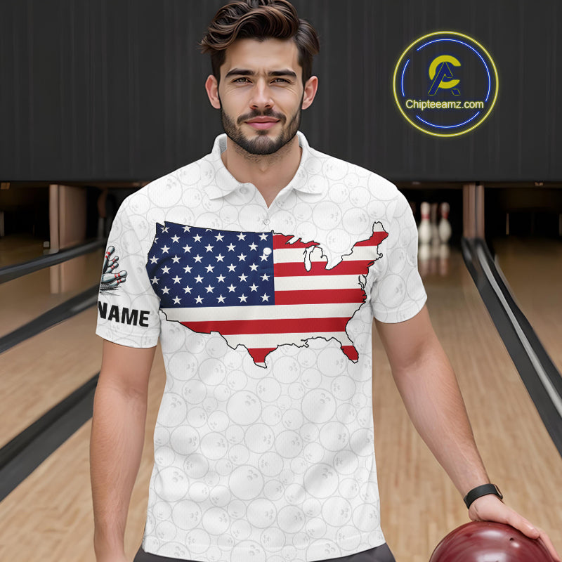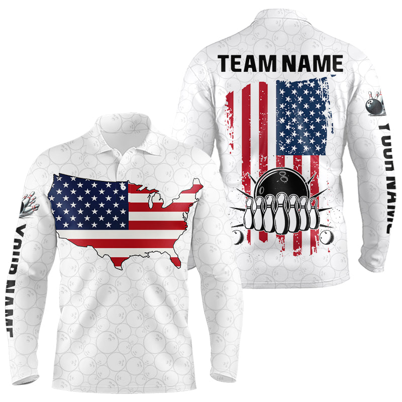 Personalized American Flag White Bowling Shirts For Men Custom patriotic Team Bowling jerseys NQS10184