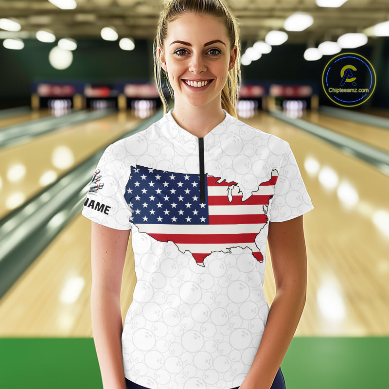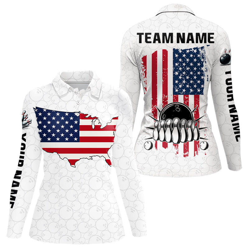 Personalized American Flag White Bowling Shirts For Women Custom patriotic Team Bowling jerseys NQS10184