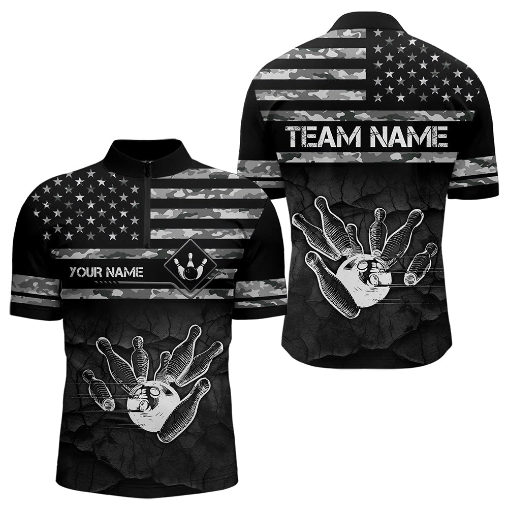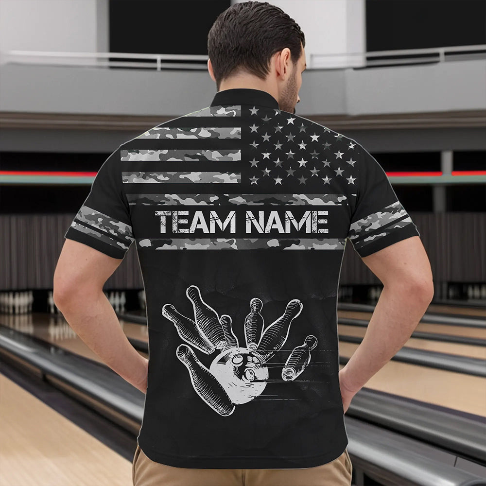 Personalized Black and White camo American flag Custom Bowling Team Shirts For Men Bowling Jersey NQS9726