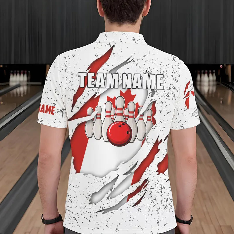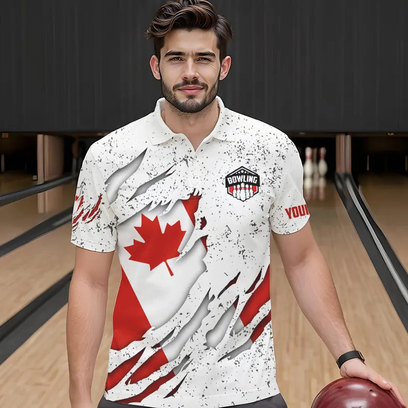 Personalized Canadian Flag Grunge pattern Bowling Shirts For Men Custom Canada Bowling Team Jerseys NQS9495