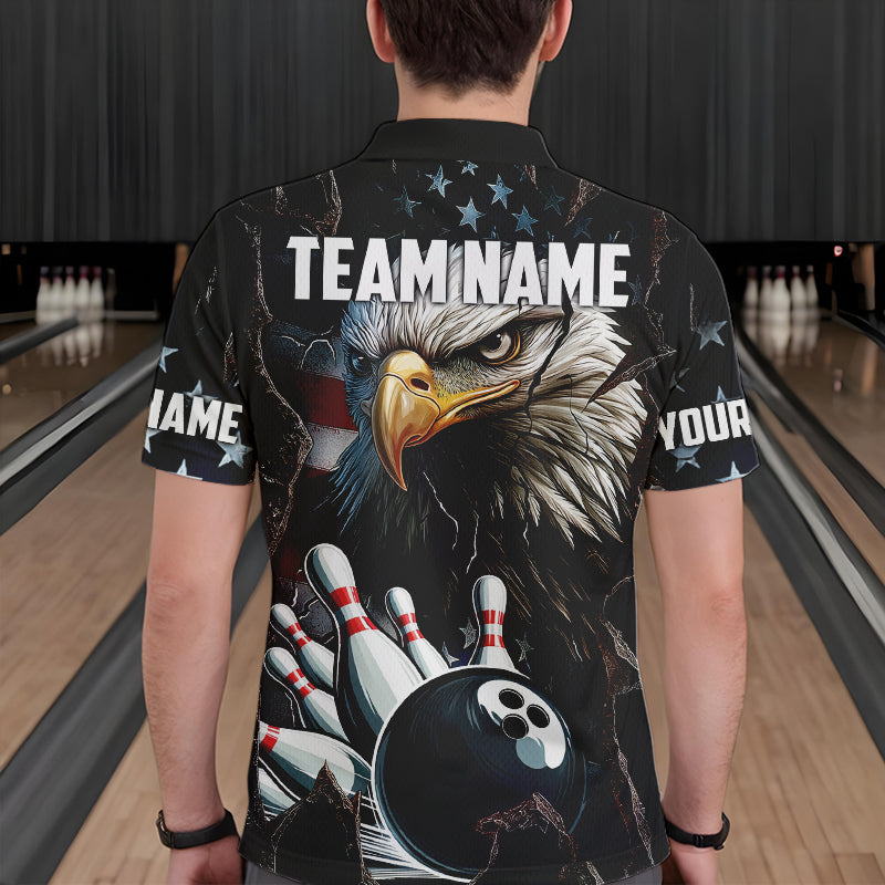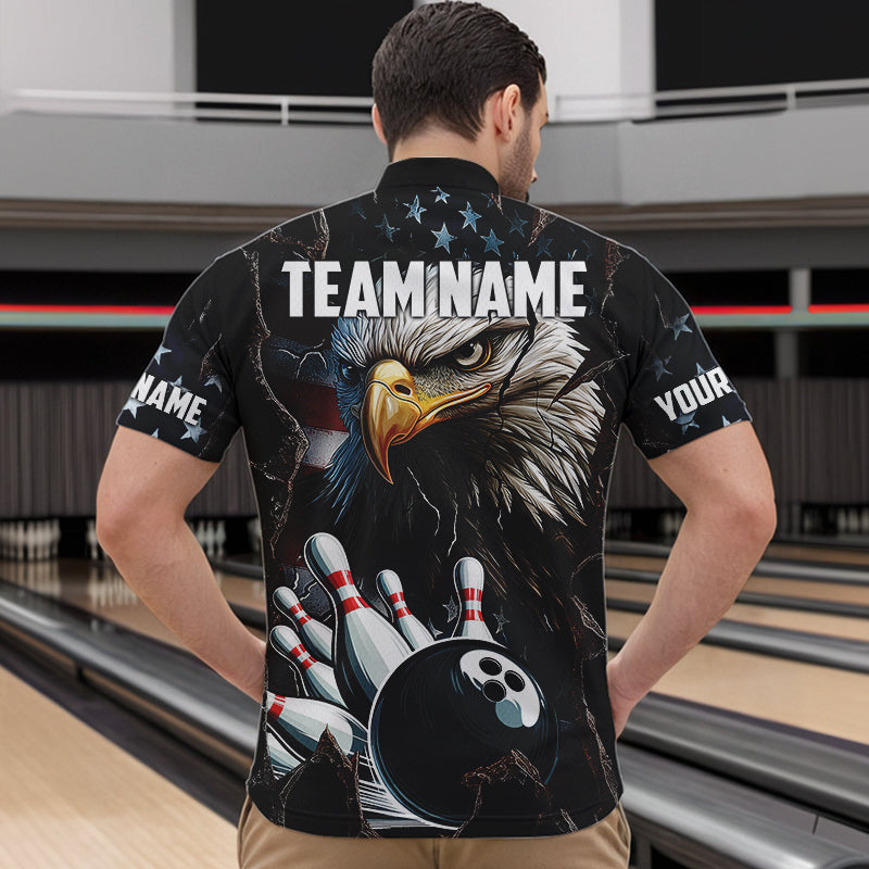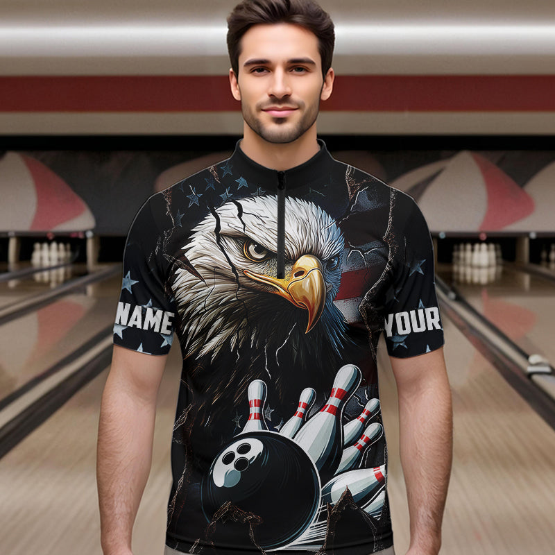 Personalized Eagle American flag Bowling Team Shirts For Mens Custom Patriotic Bowling League Jersey NQS9520