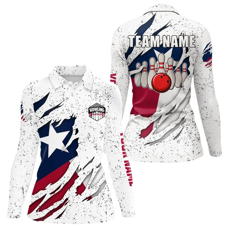 Personalized Texas Flag Grunge pattern Bowling Shirts For Women Custom Texas Bowling Team Jerseys NQS9468