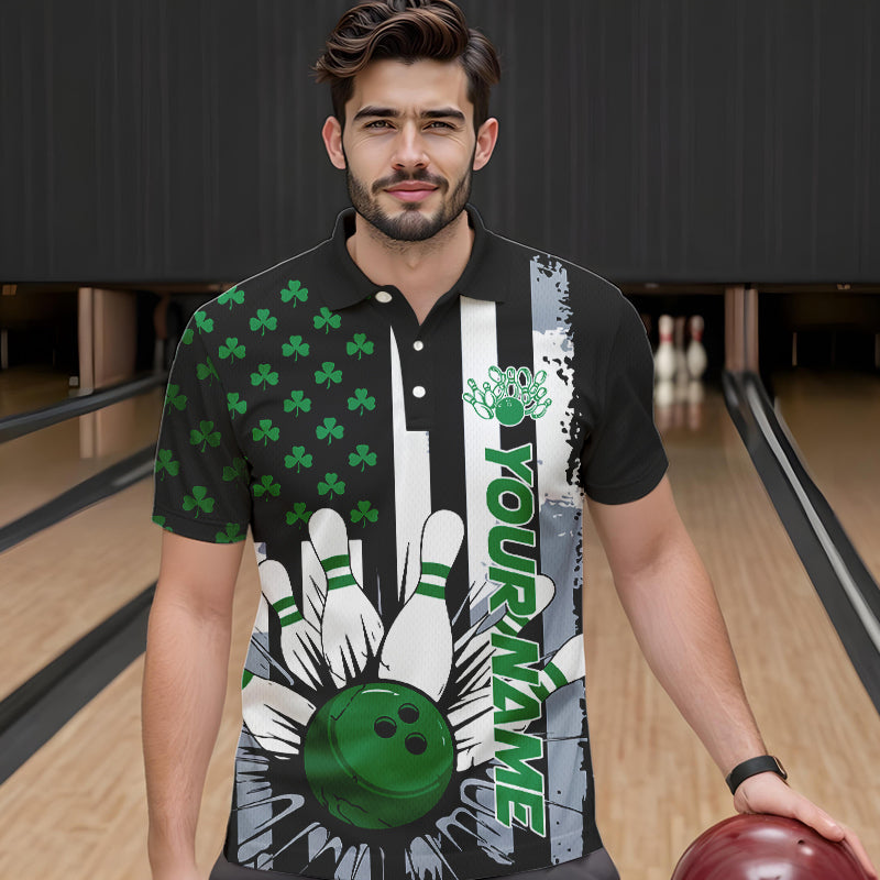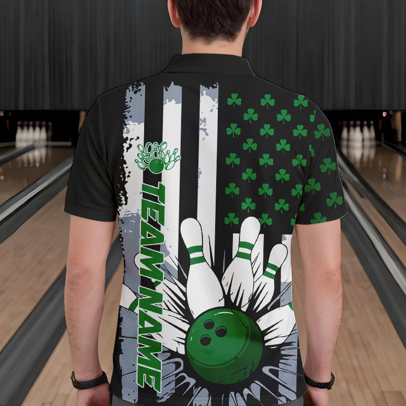 Custom Saint Patricks Bowling Polo Shirts For Men, Shamrock Flag US Bowling Team Shirt IPHW8575