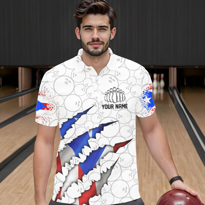 Personalized Puerto Rico Flag Bowling Polo Shirts For Men, Puerto Rico Bowling Jerseys IPHW8725