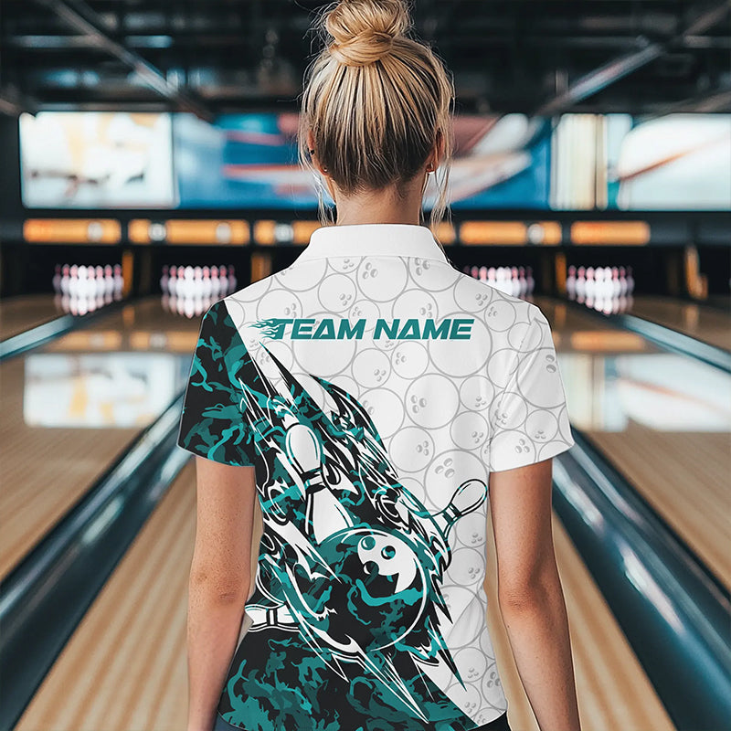 Custom Turquoise Blue Camouflage Bowling Women Polo Shirts, Team Uniform Bowler Outfit IPHW8772