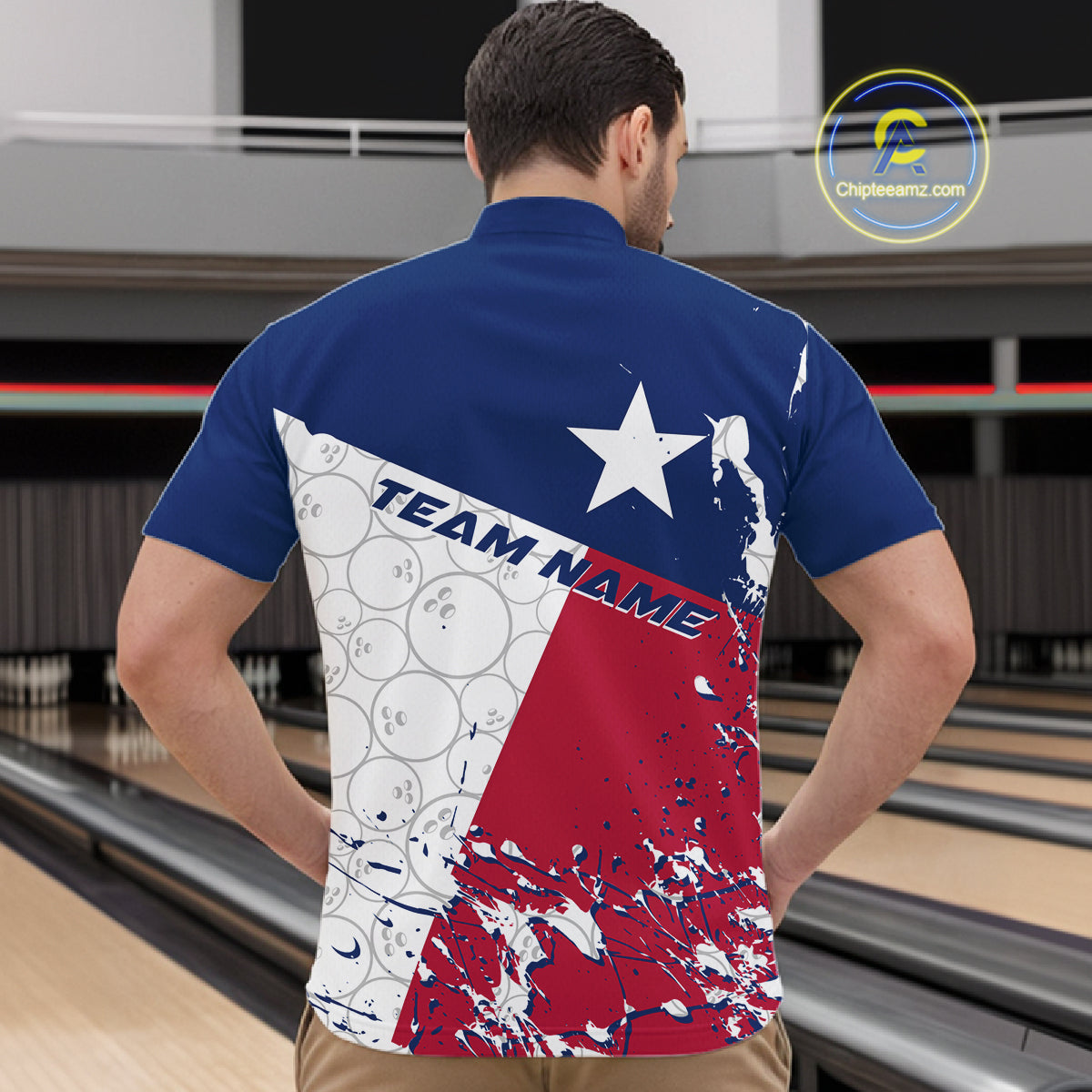 Custom Texas Flag Bowling Team Men Quarter-Zip Shirts, Texas Bowling League Shirt Team Uniform IPHW9632