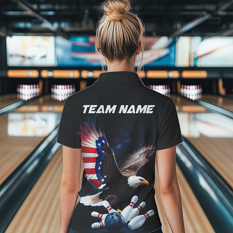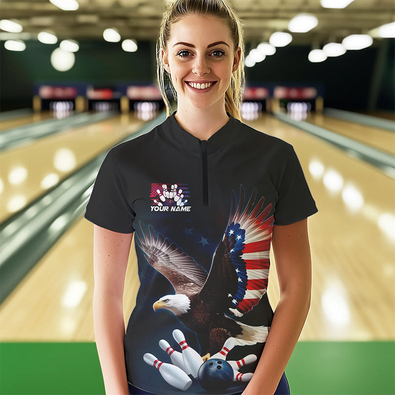 US Flag Eagle Custom Patriotic Bowling Quarter-Zip Shirt For Women, US Bowling League Shirt IPHW8392
