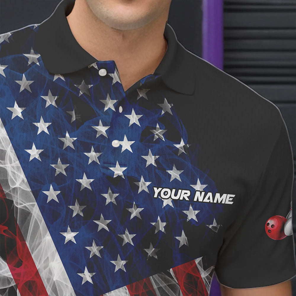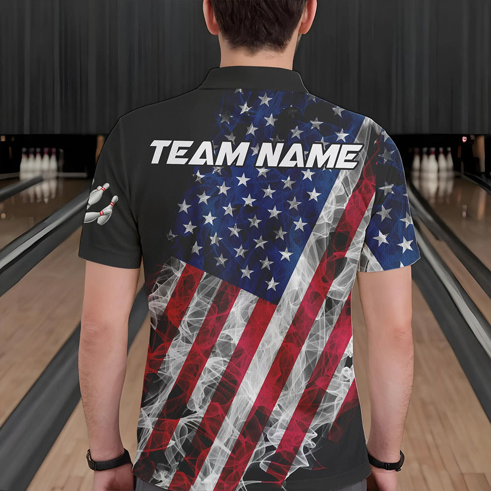 Smoke American Flag Black Bowling Polo, Quarter Zip shirt for men Custom patriotic Team bowling jersey NQS9405