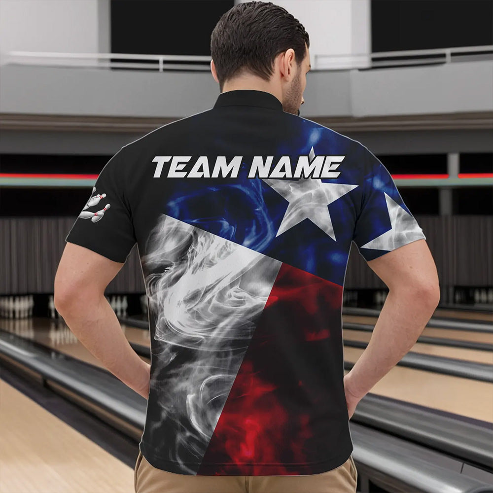 Smoke Texas Flag Black Bowling Polo, Quarter Zip shirt for men Custom patriotic Team bowling jersey NQS9631