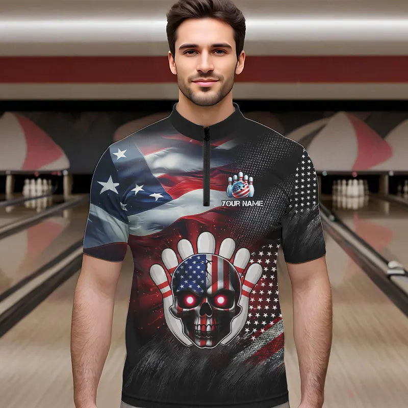 US Flag Bowling Quarter-Zip Shirt for Men and Women Custom Bowling Team League QZT600