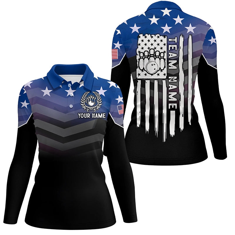 Womens bowling Polo, Quarter zip shirts Custom American flag patriotic bowling team league jerseys NQS8096