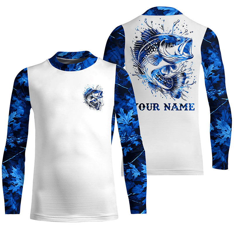 Largemouth Bass fishing blue camo UV protection Customize name long sleeves personalized fishing gifts NQS839