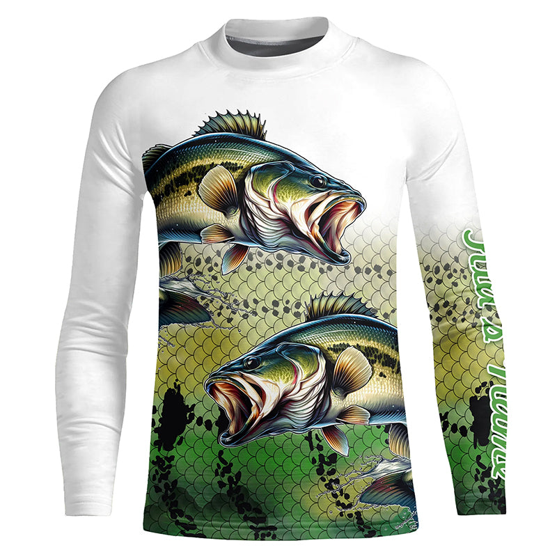 Largemouth Bass Fishing Customize Green scales UV Protection Long sleeve Fishing Shirts, bass jerseys NQS266