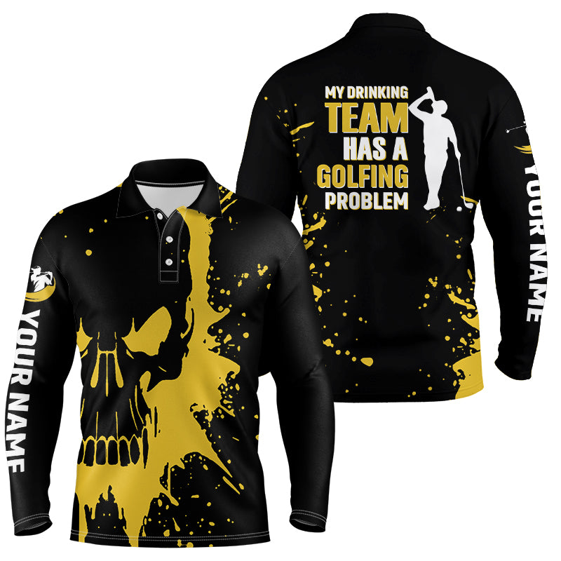 Mens golf polos shirts custom My drinking team has a golfing problem, golf beer team shirt | Yellow NQS6212