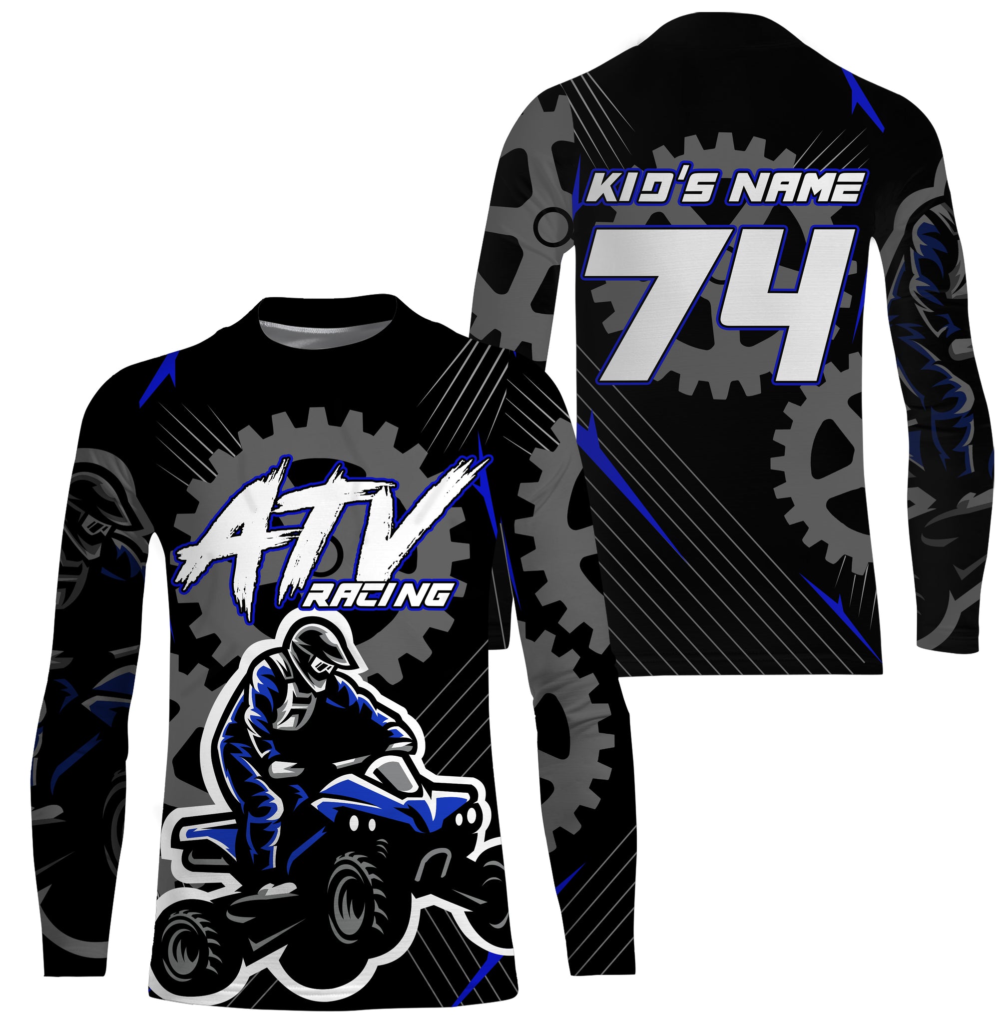 Adult&Kid Blue ATV Motocross Jersey Personalized UPF30+ Quad Bike Shirt Off-Road ATV MX Racing PDT737