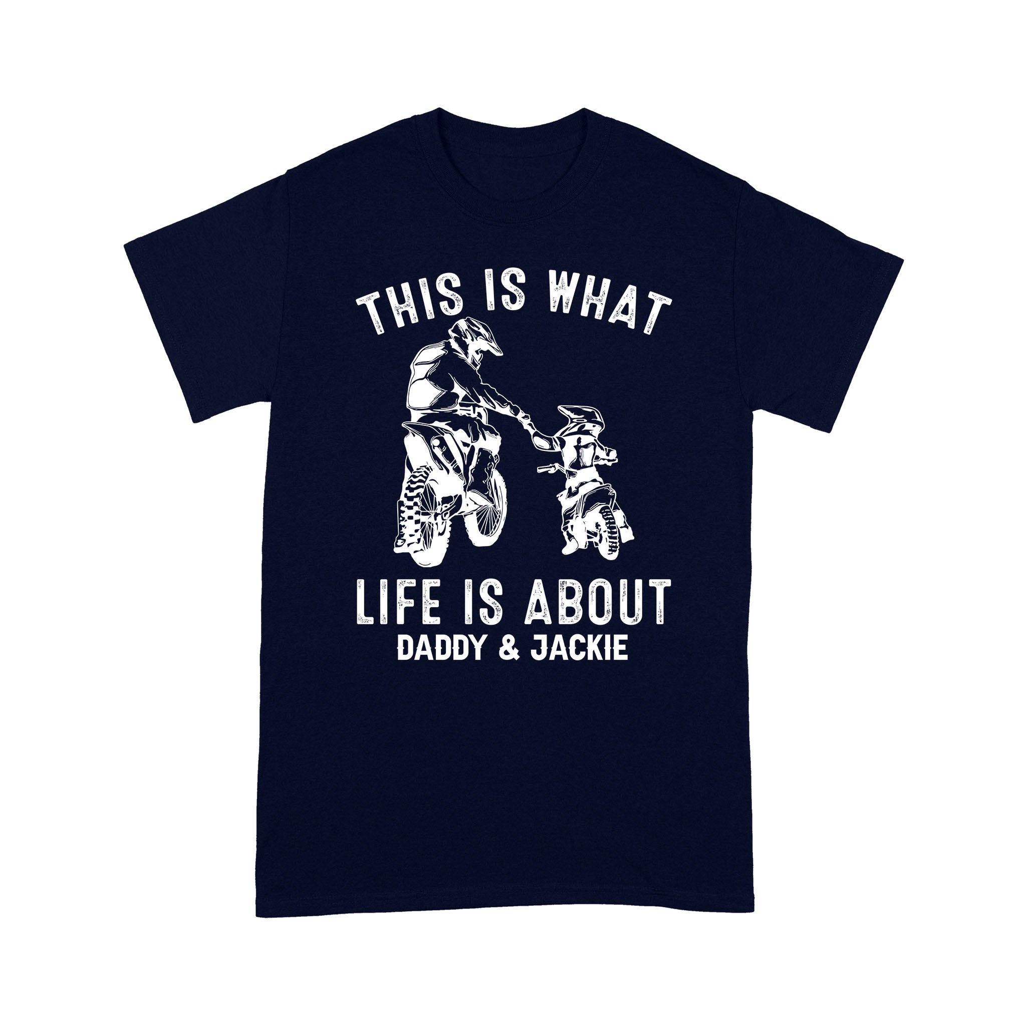 Biker Dad What Life Is About - Motorcycle Men T-shirt, Father & Son Biker Tee for Riding Dad, Custom Name Shirt| NMS66 A01