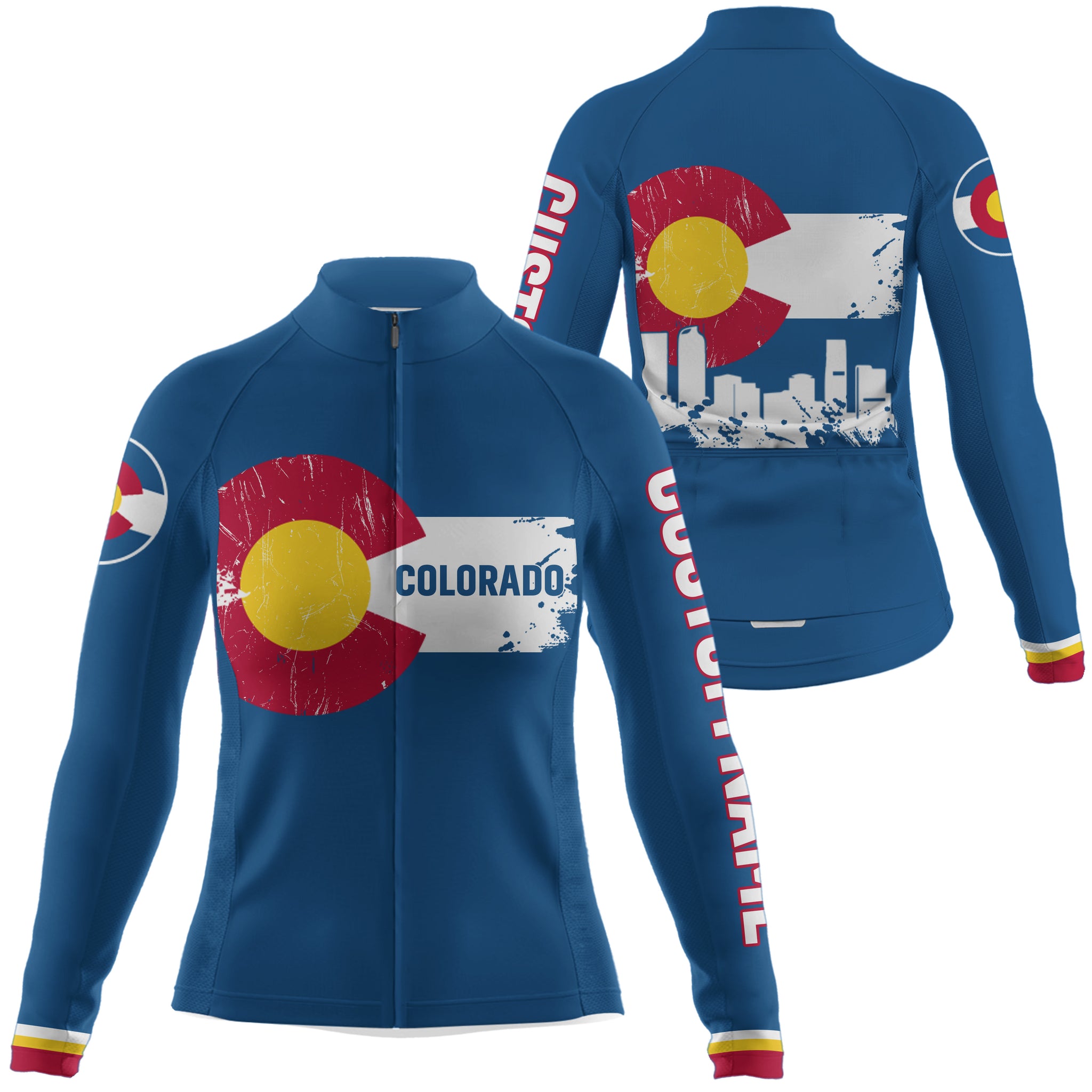 Blue Colorado flag men/women cycling jersey UPF50+ Colorado mountain bike shirt with 3 pockets| SLC168
