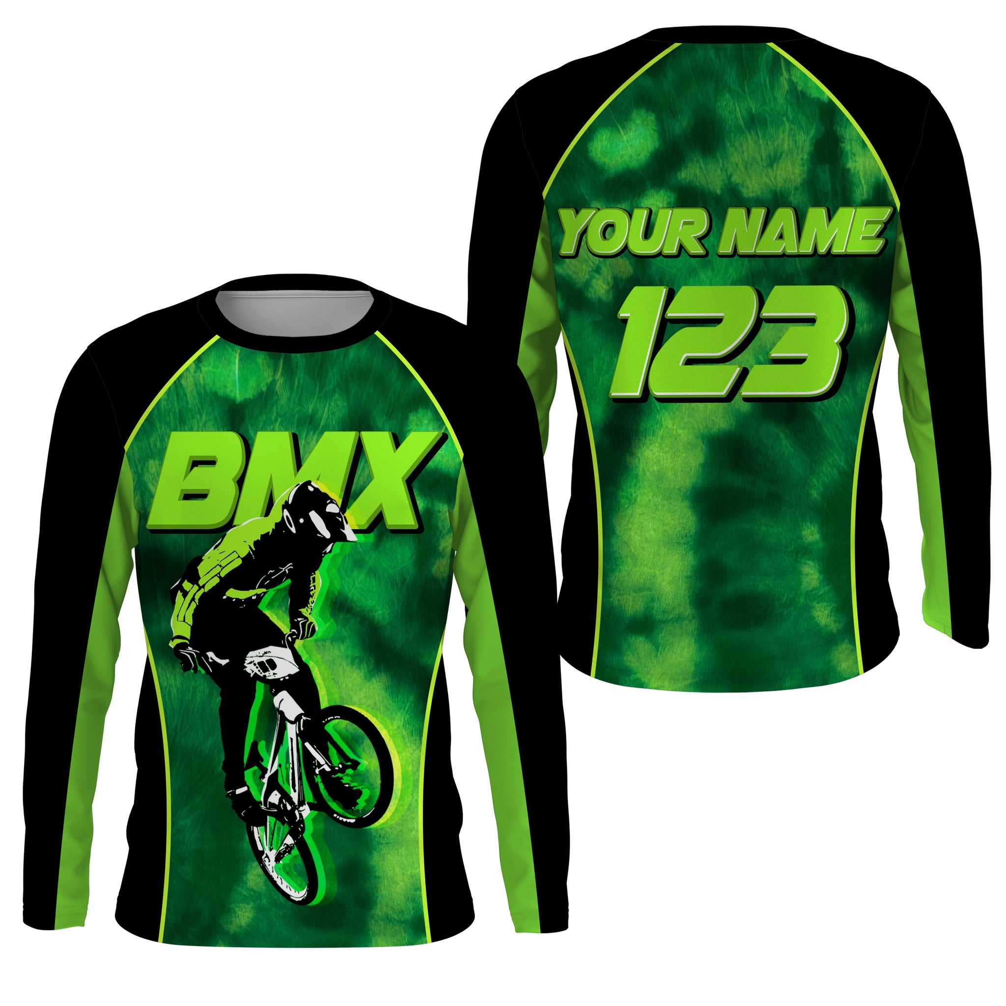 Personalized adult kid BMX racing jersey UPF30+ green bike shirts Cycling bicycle motocross clothes| SLC42