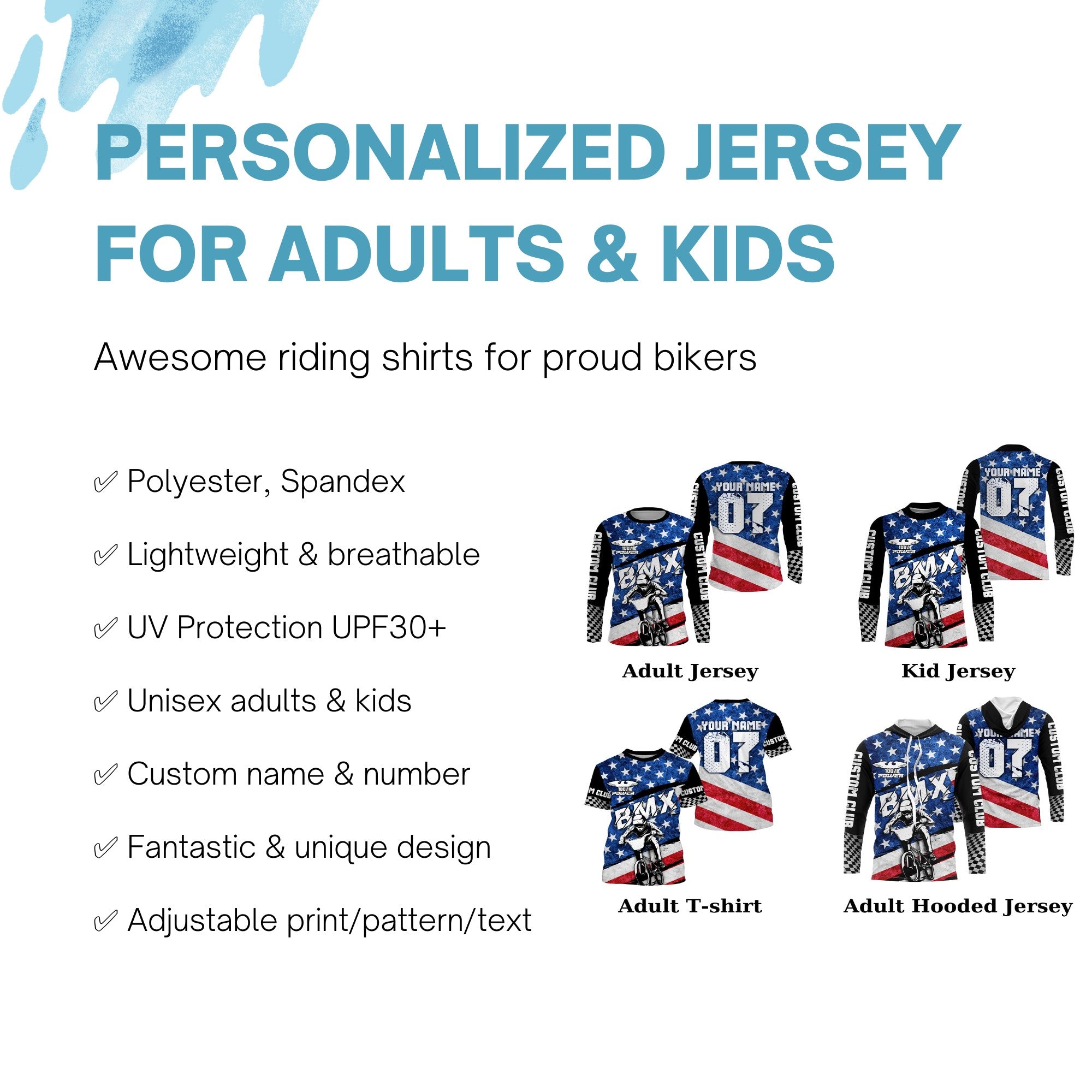 American Adult kid BMX jersey Custom UPF30+ USA Cycling bike shirt Off-road extreme sportswear| SLC22