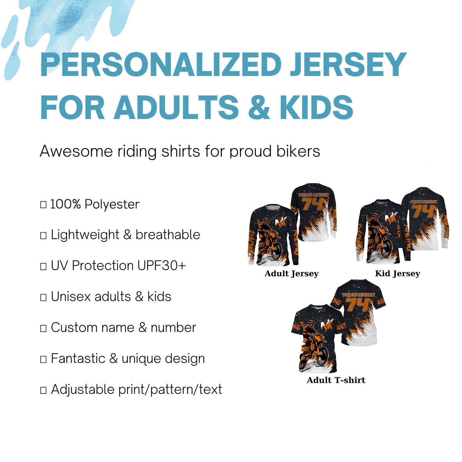 Custom Dirt Bike jersey youth men women UPF30+ orange MX racing shirt biker off-road motorcycle PDT418